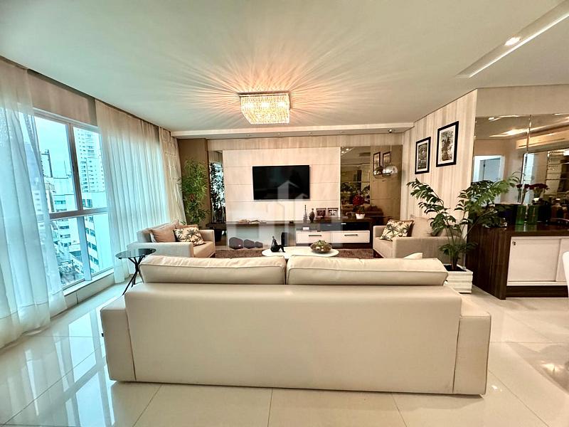 Apartamento à venda na Avenida Central, a apenas 350 metros da Praia Central. Possui 3 suítes, lavabo, churrasqueira, 130m² de área privativa, mobiliado e com 4 vagas de garagem. O condomínio conta com academia, sala de jogos, cinema, piscina adulto e infantil. Estuda permuta e aceita financiamento.