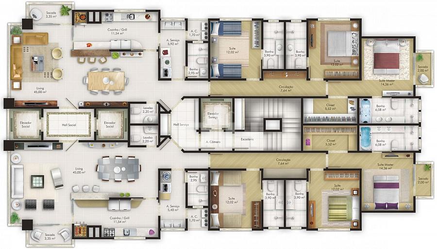 3 dormitórios (3 suítes)