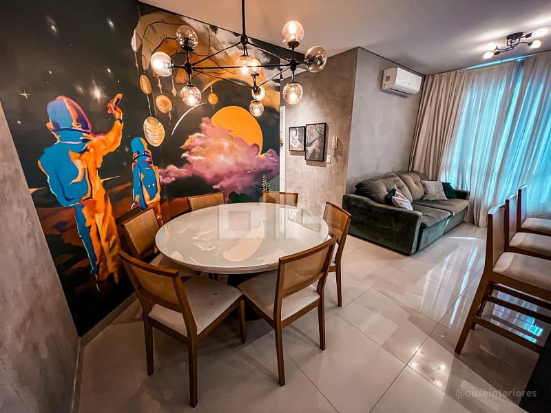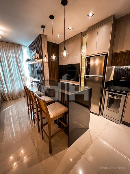 Apartamento na Rua Pindaíba, com 1 suíte, 1 dormitório, banheiro social, sala de estar e jantar integradas à cozinha com churrasqueira a carvão. Face norte, recebe sol da tarde, conta com área de serviço e 1 vaga privativa.