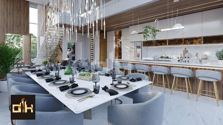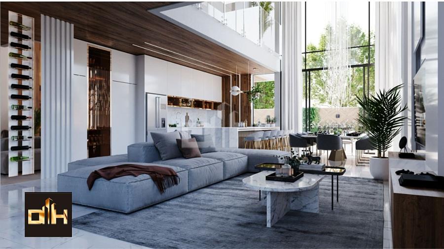 Sala de estar e jantar com pé direito duplo